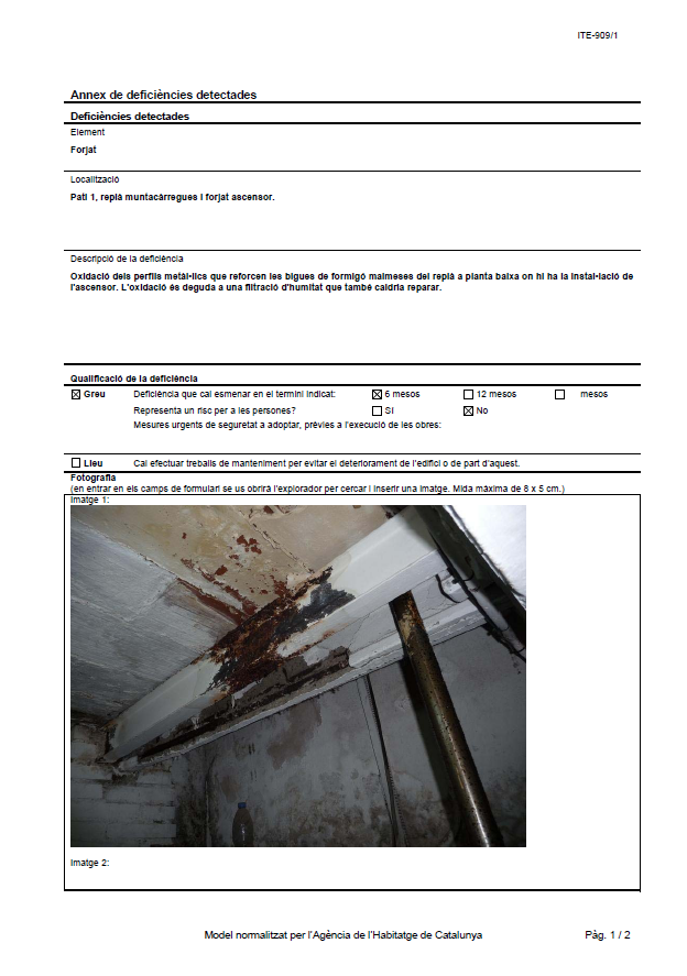 El resulta de la inspecció, realitzada per un tècnic competent, és de: