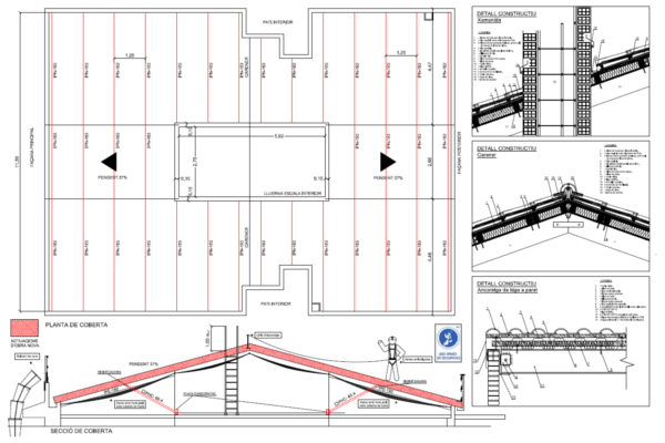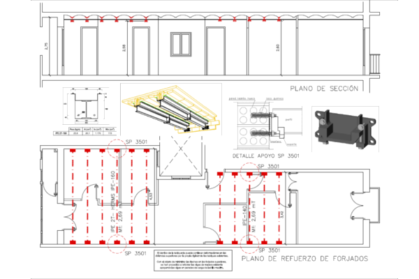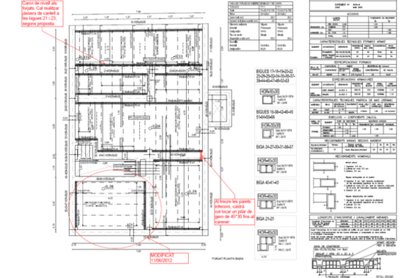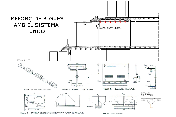 Tenim experiència en el càlcul d’estructures de nova edificació, naus industrials, reforços de forjats, reforços de bigues, reforços de pilars, estintolaments (apeos), reforços de fonamentació, i murs de contenció.
