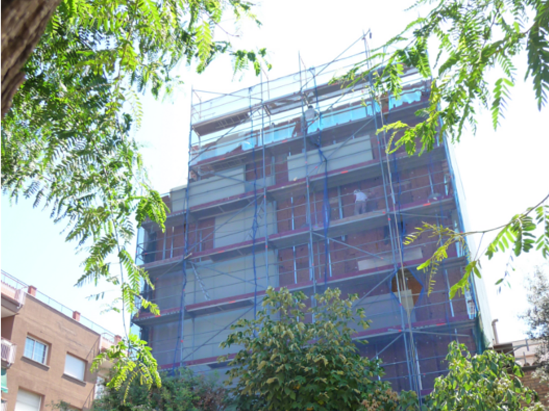 Projecte de tractament visual de mitgera i millora d'eficiència energètica, amb l'aplicació d'aïllament tèrmic de suro. També, aplicació del sistema d'aïllament tèrmic exterior a la façana reculada de l'àtic.