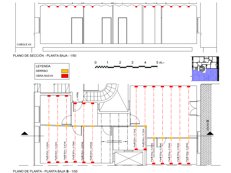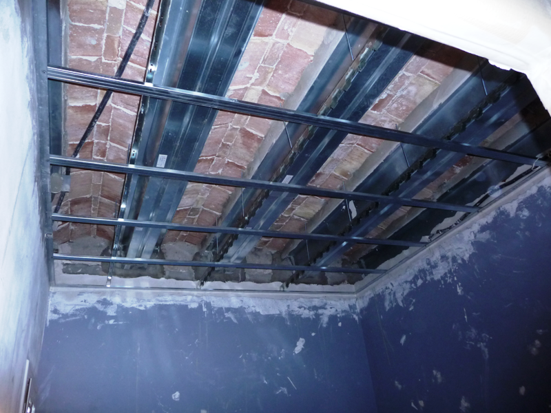 Reforma de forjats, a tot l'edifici, amb bigues de ciment aluminós. Es va utilitzar un sistema certificat amb DIT, per millorar la deformació i resistència. Els sostres s'han ignifugat d'acord amb el CTE.
